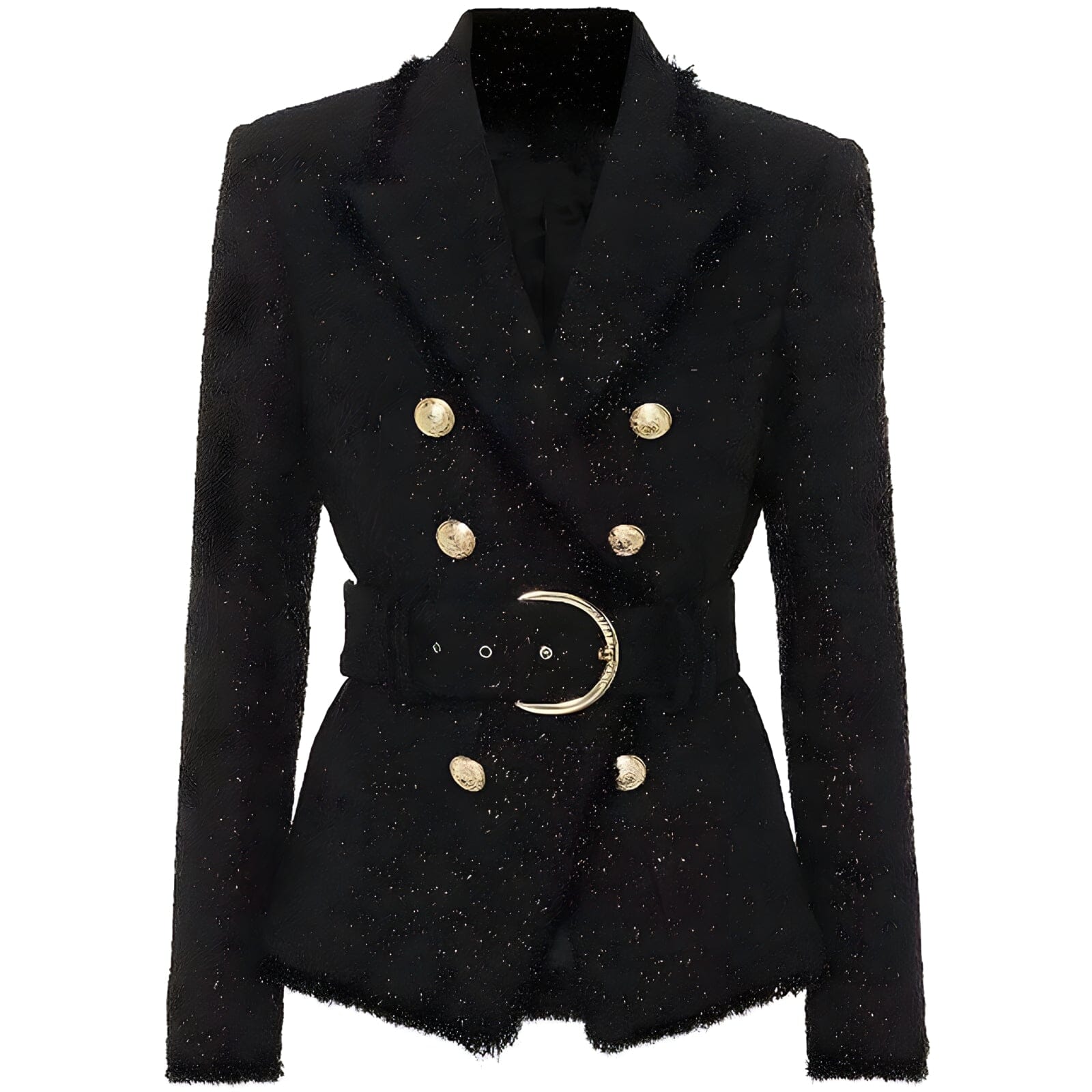 Experience the exquisite detail and styling on this stunning, belted jacket. The Blazer features an accent waist-belt, glimmering texturized exterior, and a slim, modern fit – guaranteed to make you look and feel like royalty. Only for the bold.